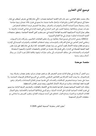 لﺎﺠﻤﻟا ﺢﺘﻓو ،ﺔﻳدﺎﺼﺘﻗﻻاو ﺔﻴﺣﺎﻴﺴﻟا ﺎﻬﺗﺎﻧﺎﻣﺈﺑ ﻋﻮﻟا ﻊﻓرو ،ﺔﻴﻟوﺪﻟا ﺔﺣﺎﺴﻟا ﻠﻋ ةرﺎﻣﻺﻟ ﺔﻴﺣﺎﻴﺴﻟا ﺔﻣﻼﻌﻟا ﺰﻳﺰﻌﺗ ﻓ