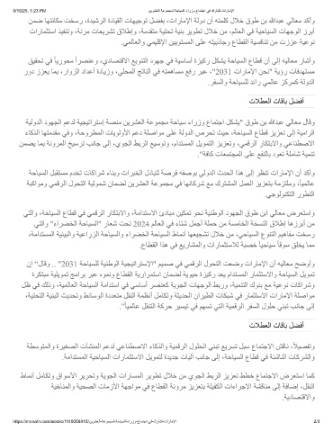 ءﺎﻛﺬﻟا ﺎﮭﺘﻣﺪﻘﻣ ﻲﻓو ،ﺔﺣوﺮﻄﻤﻟا تﺎﯾﻮﻟوﻷا ﻢﻋد ﺔﻠﺻاﻮﻣ ﻰﻠﻋ ﺔﻟوﺪﻟا صﺮﺤﺗ ﺚﯿﺣ ،ﺔﺣﺎﯿﺴﻟا عﺎﻄﻗ ﺰﯾﺰﻌﺗ ﻰﻟإ ﺔﯿﻣاﺮﻟا