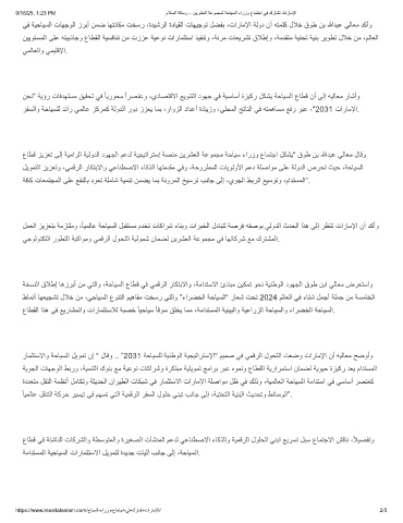 رﻔﺳﻟاو ﺔﺣﺎﯾﺳﻠﻟ دﺋار ﻲﻣﻟﺎﻋ زﻛرﻣﻛ ﺔﻟودﻟا رود ززﻌﯾ ﺎﻣﺑ ،راوزﻟا دادﻋأ ةدﺎﯾزو ،ﻲﻠﺣﻣﻟا ﺞﺗﺎﻧﻟا ﻲﻓ ﮫﺗﻣھﺎﺳﻣ ﻊﻓر رﺑﻋ ،″2031 تارﺎﻣﻹا.