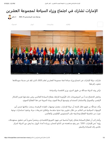 ﺎﻐﻧالﺎﻣﻮﺒﻣ ﺔﻨﻳﺪﻣ ﻲﻓ ﺪﻘﻋ يﺬﻟا ،2025 مﺎﻌﻟ ﻦﻳرشﻌﻟا ﺔﻋﻮﻤﺠﻣ ﺔﻤﻗ ﺔﺣﺎﻴﺳ ءارزو عﺎﻤﺘﺟا ﻲﻓ تارﺎﻣإلا ﺔﻟود ﺖﻛرﺎﺷ
