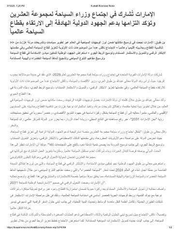 ،ﺔﺣﺎﯾﺳﻟا عﺎطﻗ زﯾزﻌﺗ ﻰﻟإ ﺔﯾﻣارﻟا ﺔﯾﻟودﻟا دوﮭﺟﻟا مﻋدﻟ ﺔﯾﺟﯾﺗارﺗﺳا ﺔﺻﻧﻣ نﯾرﺷﻌﻟا ﺔﻋوﻣﺟﻣ ﺔﺣﺎﯾﺳ ءارزو عﺎﻣﺗﺟا لﻛﺷﯾ" :قوط نﺑ ﻲﻟﺎﻌﻣ لﺎﻗو