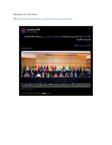 Publication: X – Al Ain News Link: #ةيلماعلا ةحايسلاب ءاقترلال ةلاعف ةكراشم ..نيرشعلا_ةعومجم# ـل ةحايسلا ءارزو عامتجا يف تاراملإا