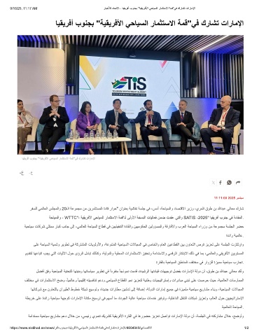ﺔﺣﺎﯾﺳﻟاو - WTTC"، ﺔﯾﻘﯾرﻓﻷا ﻲﺣﺎﯾﺳﻟا رﺎﻣﺛﺗﺳﻻا ﺔﻣﻗ"ـﻟ ﻰﻟوﻷا ﺔﺧﺳﻧﻟا تﺎﯾﻟﺎﻌﻓ نﻣﺿ تدﻘﻋ ﻲﺗﻟاو SATIS -2025" ﺎﯾﻘﯾرﻓأ بوﻧﺟ ﻲﻓ ﺔﻣﺎﻘﻣﻟا.