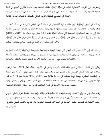 ﺔينبﻟا ﻲﻓ ﻊﺳوتﻟا ﻊيرﺎشﻣ ﺎﻬنمﺿ نﻣو ﺔﺣﺎيسﻟا عﺎطﻘب تارﺎﻣﻹا ﺔﻟود ﻲﻓ ةدﻋاوﻟا ﺔيرﺎمثتﺳﻻا صرﻔﻟا زرﺑأ ضرﻌتﺳاو