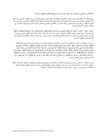 ةيلحملا تاعمتجملل هفيضي امب امنإو ،طقف يلامجلإا يلحملا جتانلا يف هتمهاسمب يحايسلا عاطقلا يف رامثتسلاا ساقُي لا" :هيلاعم فاضأو