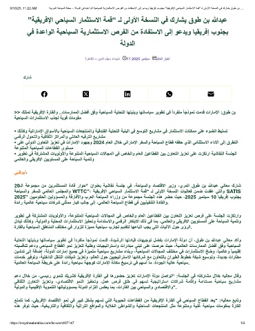 9/16/25, 11:22 AM ﺔﯾﺑرﻌﻟا ﺔﺣﺎﯾﺳﻟا ﺔﻠﺟﻣ – ﺔﻟودﻟا ﻲﻓ ةدﻋاوﻟا ﺔﯾﺣﺎﯾﺳﻟا ﺔﯾرﺎﻣﺛﺗﺳﻻا صرﻔﻟا نﻣ ةدﺎﻔﺗﺳﻻا ﻰﻟإ وﻋدﯾو ﺎﯾﻘﯾرﻓإ بوﻧﺟﺑ ”ﺔﯾﻘﯾرﻓﻹا ﻲﺣﺎﯾﺳﻟا رﺎﻣﺛﺗﺳﻻا ﺔﻣﻗ“ ـﻟ ﻰﻟوﻷا ﺔﺧﺳﻧﻟا ﻲﻓ كرﺎﺷﯾ قوط نﺑ …