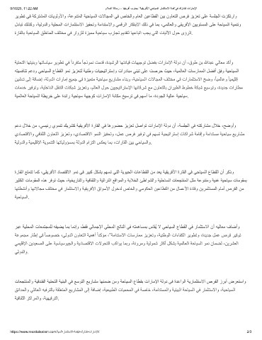 نﯾﺷدﺗ ﻰﻟإ ﺔﻓﺎﺿإ ،ﺔﻟودﻟا تارﺎﻣإ ﻊﯾﻣﺟ ﻲﻓ ةزﯾﻣﺗﻣ ﺔﯾﺣﺎﯾﺳ ﻊﯾرﺎﺷﻣ ءﺎﻧﺑو ،ﺔﯾﺣﺎﯾﺳﻟا تﻻﺎﺟﻣﻟا فﻠﺗﺧﻣ ﻲﻓ تارﺎﻣﺛﺗﺳﻻا ﺦﺿو ،ً ﺎﯾﻣﻟﺎﻋو ً ﺎﯾﻣﯾﻠﻗإ