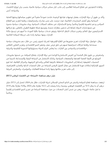 رﺎﻴﻠﻣ 257.3 ﻰﻟإ ﻞﺼﺘﻟ ،2024 مﺎﻋ لالﺧ ،تارﺎﻣإلا ﺔﻟوﺪﻟ ﻲﻟﺎﻤﺟإلا ﻲﻠﺤﻤﻟا ﺞﺗﺎﻨﻟا ﻲﻓ ﺮﻔﺴﻟاو ﺔﺣﺎﻴﺴﻟا عﺎﻄﻗ ﺔﻤﻫﺎﺴﻣ ﺖﻌﻔﺗرا