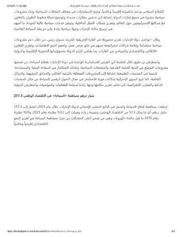 257.3 ﻰﻟإ ﻞﺼﺘﻟ ،2024 مﺎﻋ لالﺧ ،تارﺎﻣإلا ﺔﻟوﺪﻟ ﻲﻟﺎﻤﺟإلا ﻲﻠﺤﻤﻟا ﺞﺗﺎﻨﻟا ﻲﻓ ﺮﻔﺴﻟاو ﺔﺣﺎﻴﺴﻟا عﺎﻄﻗ ﺔﻤﻫﺎﺴﻣ ﺖﻌﻔﺗرا