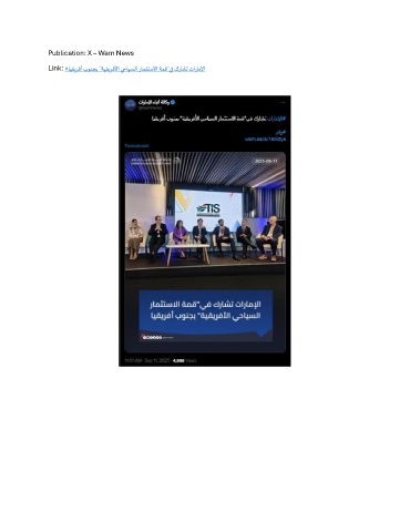 Publication: X – Wam News Link: #ايقيرفأ بونجب "ةيقيرفلأا يحايسلا رامثتسلاا ةمق"يف كراشت تاراملإا