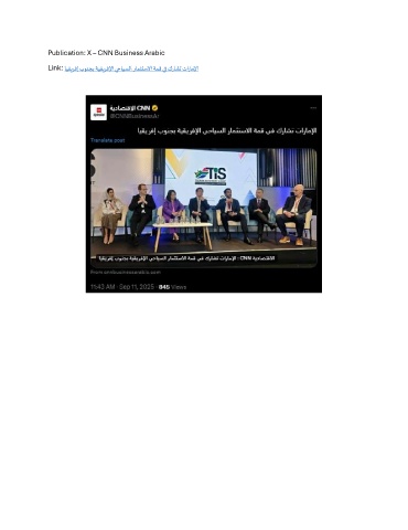 Publication: X – CNN Business Arabic Link: ايقيرفإ بونجب ةيقيرفلإا يحايسلا رامثتسلاا ةمق يف كراشت تاراملإا