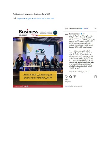 Publication: Instagram – Business Time UAE Link: ايقيرفأ بونجب "ةيقيرفلأا يحايسلا رامثتسلاا ةمق"يف كراشت تاراملإا