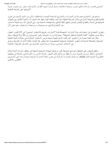 نﯾﯾوﺗﺳﻣﻟا ﻰﻠﻋ ةدﺋار ﺔﯾﺣﺎﯾﺳ ﺔﮭﺟوﻛ تارﺎﻣﻹا ﺔﻧﺎﻛﻣ زﯾزﻌﺗ ﻰﻟإ ﺔﯾﻣارﻟا تاردﺎﺑﻣﻟا لﻣﺷﯾ ﺎﻣﺑ ،2026 مﺎﻌﻠﻟ ةدﯾدﺟﻟا ﺔﯾرﯾوطﺗﻟا