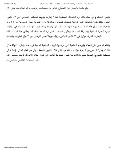 ربوتﻛأ 27 ﻲﻓ ”ﻲﺣﺎيسﻟا رﺎمثتﺳﻼﻟ ﺎيقيرﻓإو تارﺎﻣﻹا“ ﺔمﻗ ﺔﻓﺎضتﺳﻻ تارﺎﻣﻹا ﺔﻟود تادادﻌتﺳا ﻰﻟإ عﺎمتﺟﻻا ق رطﺗو