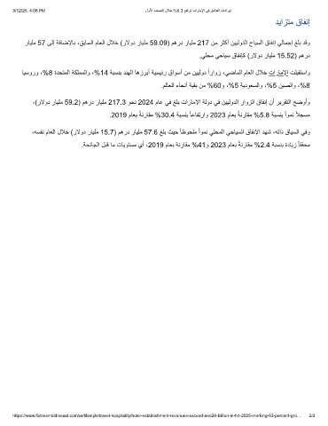،(رﻻود رﺎﯾﻠﻣ 59.2) مھرد رﺎﯾﻠﻣ 217.3 وﺣﻧ 2024 مﺎﻋ ﻲﻓ ﻎﻠﺑ تارﺎﻣﻹا ﺔﻟود ﻲﻓ نﯾﯾﻟودﻟا راوزﻟا قﺎﻔﻧإ نأ رﯾرﻘﺗﻟا ﺢﺿوأو