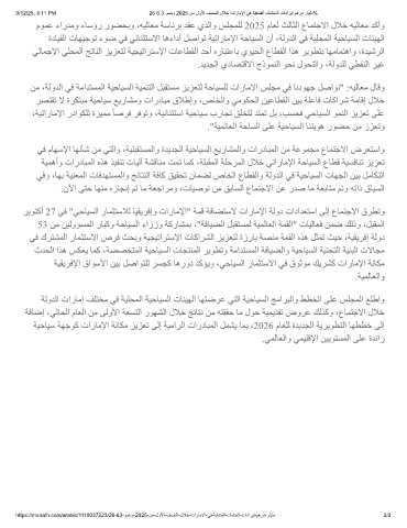 ﺔﯿﺣﺎﯿﺳ ﺔﮭﺟﻮﻛ تارﺎﻣﻹا ﺔﻧﺎﻜﻣ ﺰﯾﺰﻌﺗ ﻰﻟإ ﺔﯿﻣاﺮﻟا تاردﺎﺒﻤﻟا ﻞﻤﺸﯾ ﺎﻤﺑ ،2026 مﺎﻌﻠﻟ ةﺪﯾﺪﺠﻟا ﺔﯾﺮﯾﻮﻄﺘﻟا ﺎﮭﻄﻄﺧ ﻰﻟإ