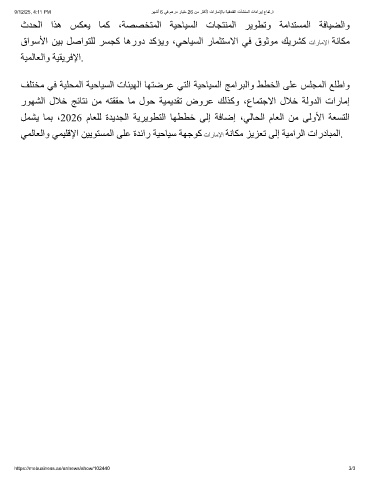 ﻲﻤﻟﺎﻌﻟاو ﻲﻤﯿﻠﻗﻹا ﻦﯿﯾﻮﺘﺴﻤﻟا ﻰﻠﻋ ةﺪﺋار ﺔﯿﺣﺎﯿﺳ ﺔﮭﺟﻮﻛ تارﺎﻣﻹا ﺔﻧﺎﻜﻣ ﺰﯾﺰﻌﺗ ﻰﻟإ ﺔﯿﻣاﺮﻟا تاردﺎﺒﻤﻟا.