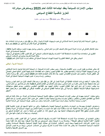 9/12/25, 4:11 PM ﺔﯾﺑرﻌﻟا ﺔﺣﺎﯾﺳﻟا ﺔﻠﺟﻣ – ﻲﺣﺎﯾﺳﻟا عﺎطﻘﻟا ﺔﯾﺳﻓﺎﻧﺗ زﯾزﻌﺗﻟ ﮫﺗاردﺎﺑﻣ ضرﻌﺗﺳﯾو 2025 مﺎﻌﻟ ثﻟﺎﺛﻟا ﮫﻋﺎﻣﺗﺟا دﻘﻌﯾ ﺔﺣﺎﯾﺳﻠﻟ تارﺎﻣﻹا سﻠﺟﻣ