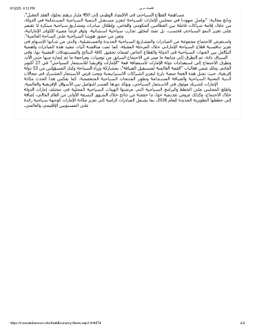 ،ﺔﻟوﺪﻟا ﻲﻓ ﺔﻣاﺪﺘﺴﻤﻟا ﺔﯿﺣﺎﯿﺴﻟا ﺔﯿﻤﻨﺘﻟا ﻞﺒﻘﺘﺴﻣ ﺰﻳﺰﻌﺘﻟ ﺔﺣﺎﯿﺴﻠﻟ تارﺎﻣﻹا ﺲﻠﺠﻣ ﻲﻓ ﺎﻧدﻮﮫﺟ ﻞﺻاﻮﻧ" :ﻪﯿﻟﺎﻌﻣ ﻊﺑﺎﺗو