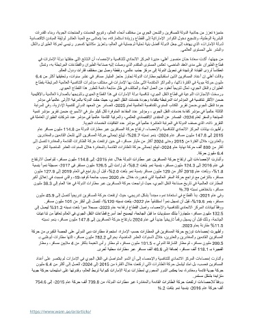 نيرداغملاو نيمداقلا لمشت يتلا نيرفاسملا ةكرح يلامجإ غلبيل ،% 28.7 هتبسن ومنب ، 2024 ماع رفاسم نويلم 147.8 ىلإ 2015