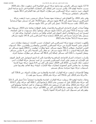 نﻮﯿﻠﻣ 38.3 ﻰﻟإ مﺎﻌﻟا اﺬھ ﻲﻓ ﺔﻟوﺪﻟا تارﺎﻄﻣ ﺮﺒﻋ ﻦﻳﺮﻓﺎﺴﻤﻟا ﺔﻛﺮﺣ ﺖﻌﺟاﺮﺗ ﺚﯿﺣ ،يﻮﺠﻟا
