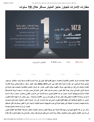 زوﺎﺟﺗ ﻊﻣ ،ﺎﯾﺋﺎﻧﺛﺗﺳا اوﻣﻧو ﺔﯾﻋوﻧ تازﻔﻗ تارﺎﻣﻹا ﺔﻟود ﻲﻓ يوﺟﻟا لﻘﻧﻟا عﺎطﻗ لﯾﺟﺳﺗ ،ءﺎﺻﺣﻹاو ﺔﯾﺳﻓﺎﻧﺗﻠﻟ يدﺎﺣﺗﻻا زﻛرﻣﻟا تاءﺎﺻﺣإ تﻔﺷﻛ