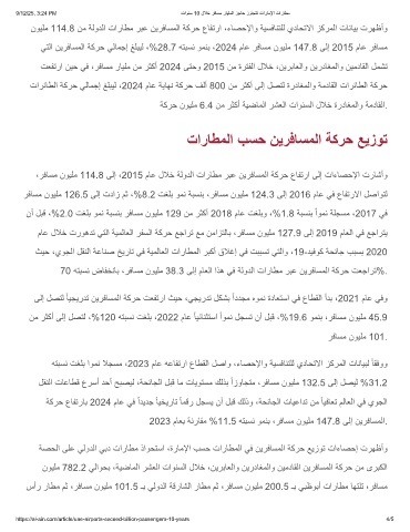 ﻲﺗﻟا نﯾرﻓﺎﺳﻣﻟا ﺔﻛرﺣ ﻲﻟﺎﻣﺟإ ﻎﻠﺑﯾﻟ ،%28.7 ﮫﺗﺑﺳﻧ وﻣﻧﺑ ،2024 مﺎﻋ رﻓﺎﺳﻣ نوﯾﻠﻣ 147.8 ﻰﻟإ 2015 مﺎﻋ رﻓﺎﺳﻣ