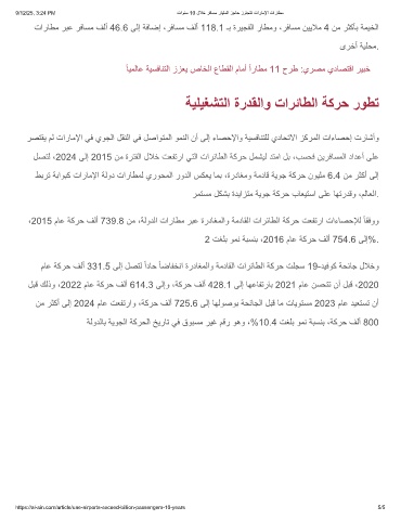 رﺻﺗﻘﯾ مﻟ تارﺎﻣﻹا ﻲﻓ يوﺟﻟا لﻘﻧﻟا ﻲﻓ لﺻاوﺗﻣﻟا وﻣﻧﻟا نأ ﻰﻟإ ءﺎﺻﺣﻹاو ﺔﯾﺳﻓﺎﻧﺗﻠﻟ يدﺎﺣﺗﻻا زﻛرﻣﻟا تاءﺎﺻﺣإ ترﺎﺷأو