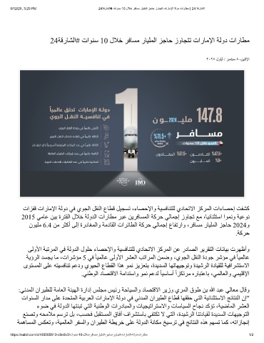 تاﺰﻔﻗ تارﺎﻣﻹا ﺔﻟود ﻲﻓ يﻮﺠﻟا ﻞﻘﻨﻟا عﺎﻄﻗ ﻞﯿﺠﺴﺗ ،ءﺎﺼﺣﻹاو ﺔﯿﺴﻓﺎﻨﺘﻠﻟ يدﺎﺤﺗﻻا ﺰﻛﺮﻤﻟا تاءﺎﺼﺣإ ﺖﻔﺸﻛ