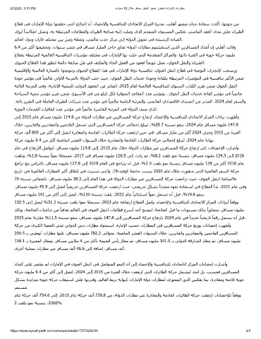 مﺎﻋ ﺔﻛﺮﺣ ﻒﻟأ 754.6 ﻰﻟإ ،2015 مﺎﻋ ﺔﻛﺮﺣ ﻒﻟأ 739.8 ﻦﻣ ،ﺔﻟوﺪﻟا تارﺎﻄﻣ ﺮﺒﻋ ةردﺎﻐﻤﻟاو ﺔﻣدﺎﻘﻟا تاﺮﺋﺎﻄﻟا ﺔﻛﺮﺣ ﺖﻌﻔﺗرا تاءﺎﺼﺣﻺﻟ ﺎﻘﻓوو