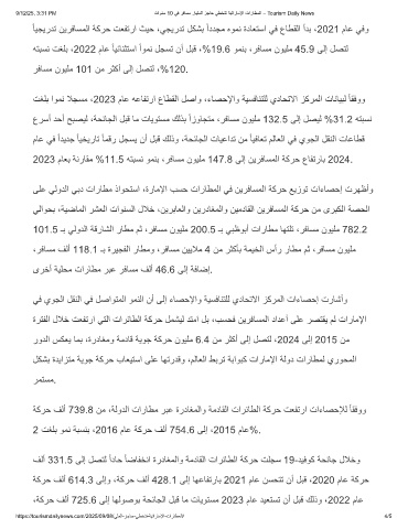 2023 مﺎﻌﺑ ﺔﻧرﺎﻘﻣ %11.5 ﮫﺗﺑﺳﻧ وﻣﻧﺑ ،رﻓﺎﺳﻣ نوﯾﻠﻣ 147.8 ﻰﻟإ نﯾرﻓﺎﺳﻣﻟا ﺔﻛرﺣ عﺎﻔﺗرﺎﺑ 2024.