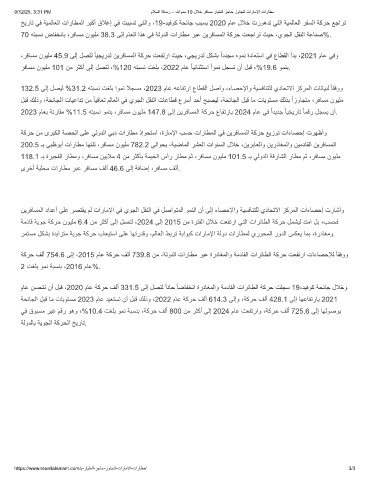 نﯾرﻓﺎﺳﻣﻟا دادﻋأ ﻰﻠﻋ رﺻﺗﻘﯾ مﻟ تارﺎﻣﻹا ﻲﻓ يوﺟﻟا لﻘﻧﻟا ﻲﻓ لﺻاوﺗﻣﻟا وﻣﻧﻟا نأ ﻰﻟإ ءﺎﺻﺣﻹاو ﺔﯾﺳﻓﺎﻧﺗﻠﻟ يدﺎﺣﺗﻻا زﻛرﻣﻟا تاءﺎﺻﺣإ ترﺎﺷأو