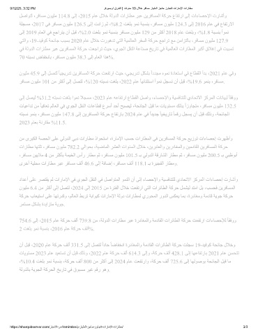 ﻞﺻاﻮﺘﻟ ،ﺮﻓﺎﺴﻣ نﻮﯿﻠﻣ 114.8 ﻰﻟإ ،2015 مﺎﻋ لﻼﺧ ﺔﻟوﺪﻟا تارﺎﻄﻣ ﺮﺒﻋ ﻦﯾﺮﻓﺎﺴﻤﻟا ﺔﻛﺮﺣ عﺎﻔﺗرا ﻰﻟإ تاءﺎﺼﺣﻹا ترﺎﺷأو