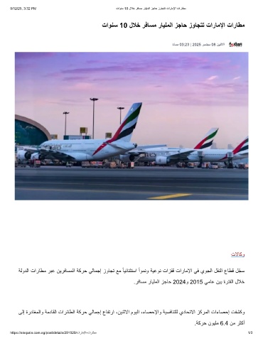 ﺔﻟودﻟا تارﺎطﻣ رﺑﻋ نﯾرﻓﺎﺳﻣﻟا ﺔﻛرﺣ ﻲﻟﺎﻣﺟإ زوﺎﺟﺗ ﻊﻣ ً ﺎﯾﺋﺎﻧﺛﺗﺳا ًاوﻣﻧو ﺔﯾﻋوﻧ تازﻔﻗ تارﺎﻣﻹا ﻲﻓ يوﺟﻟا لﻘﻧﻟا عﺎطﻗ لّﺟﺳ