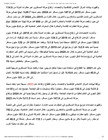 نوﯾﻠﻣ 114.8 ﻰﻟإ ،2015 مﺎﻋ لﻼﺧ ﺔﻟودﻟا تارﺎطﻣ رﺑﻋ نﯾرﻓﺎﺳﻣﻟا ﺔﻛرﺣ عﺎﻔﺗرا ﻰﻟإ تاءﺎﺻﺣﻹا ترﺎﺷأو
