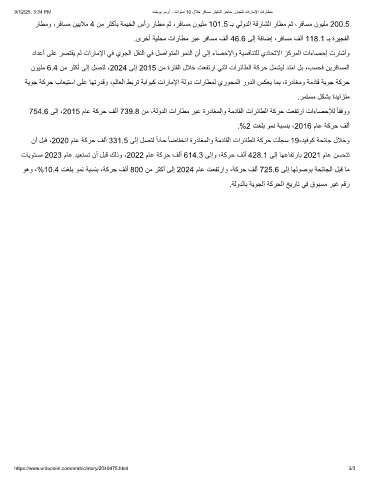 دادﻋأ ﻰﻠﻋ رﺻﺗﻘﯾ مﻟ تارﺎﻣﻹا ﻲﻓ يوﺟﻟا لﻘﻧﻟا ﻲﻓ لﺻاوﺗﻣﻟا وﻣﻧﻟا نأ ﻰﻟإ ءﺎﺻﺣﻹاو ﺔﯾﺳﻓﺎﻧﺗﻠﻟ يدﺎﺣﺗﻻا زﻛرﻣﻟا تاءﺎﺻﺣإ ترﺎﺷأو