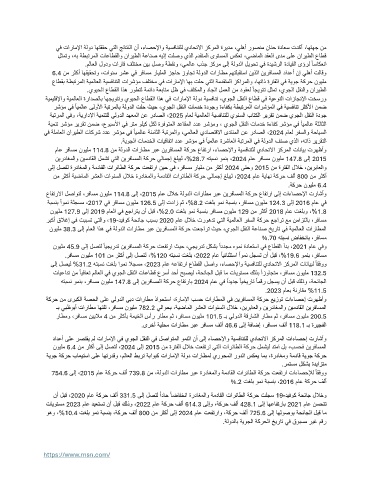 دادعأ ىلع رصتقي مل تاراملإا يف يوجلا لقنلا يف لصاوتملا ومنلا نأ ىلإ ءاصحلإاو ةيسفانتلل يداحتلاا زكرملا تاءاصحإ تراشأو