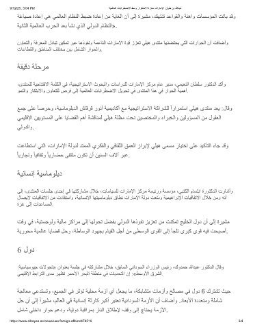 ﻰﻟإ ،ىدﺗﻧﻣﻟا تﺎﺳﻠﺟ ىدﺣإ ﻲﻓ ﺎﮭﺗﻛرﺎﺷﻣ لﻼﺧ ،تﺎﺳﺎﯾﺳﻠﻟ تارﺎﻣﻹا زﻛرﻣ ﺔﺳﯾﺋرو ﺔﺳﺳؤﻣ ،ﻲﺑﺗﻛﻟا مﺎﺳﺗﺑا ةروﺗﻛدﻟا ترﺎﺷأو