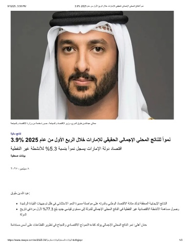 9/12/25, 3:58 PM 3.9% 2025 مﺎﻋ نﻣ لوﻷا ﻊﺑرﻟا لﻼﺧ تارﺎﻣﻺﻟ ﻲﻘﯾﻘﺣﻟا ﻲﻟﺎﻣﺟﻹا ﻲﻠﺣﻣﻟا ﺞﺗﺎﻧﻠﻟ ًاوﻣﻧ