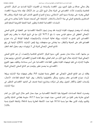 ﺎﻫاؤرو تارﺎﻣﻹا ﺔﻟود تﺎﻬﺟوﺗ سكﻌي ،%5 تزوﺎجﺗ ﺔبسنﺑ ﻲطﻔنﻟا ريﻏ ﻲﻟﺎمﺟﻹا ﻲﻠحمﻟا ﺞﺗﺎنﻟا ومﻧ نإ تﻟﺎﻗو