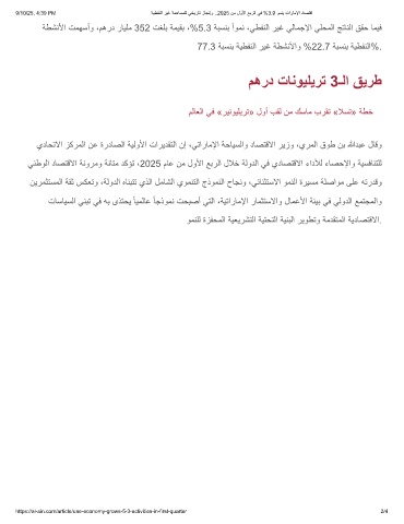 9/10/25, 4:39 PM ﺔﯾطﻔﻧﻟا رﯾﻏ ﺔﻣھﺎﺳﻣﻠﻟ ﻲﺧﯾرﺎﺗ زﺎﺟﻧإو ..2025 نﻣ لوﻷا ﻊﺑرﻟا ﻲﻓ %3.9 وﻣﻧﯾ تارﺎﻣﻹا دﺎﺻﺗﻗا