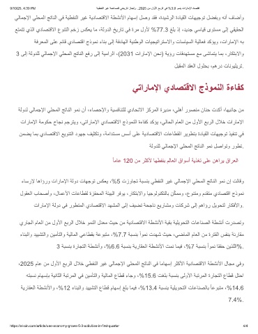9/10/25, 4:39 PM ﺔﯾطﻔﻧﻟا رﯾﻏ ﺔﻣھﺎﺳﻣﻠﻟ ﻲﺧﯾرﺎﺗ زﺎﺟﻧإو ..2025 نﻣ لوﻷا ﻊﺑرﻟا ﻲﻓ %3.9 وﻣﻧﯾ تارﺎﻣﻹا دﺎﺻﺗﻗا