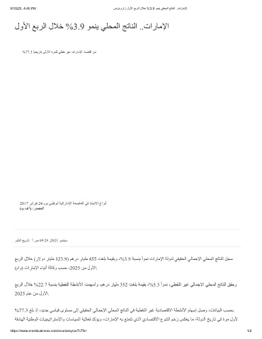 9/10/25, 4:40 PM سﻧزﺑ مرإ | لوﻷا ﻊﺑرﻟا لﻼﺧ %3.9 وﻣﻧﯾ ﻲﻠﺣﻣﻟا ﺞﺗﺎﻧﻟا ..تارﺎﻣﻹا