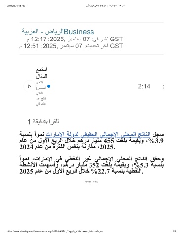9/10/25, 4:43 PM لوﻷا ﻊﺑرﻟا ﻲﻓ %3.9 لدﻌﻣﺑ تارﺎﻣﻹا دﺎﺻﺗﻗا وﻣﻧ