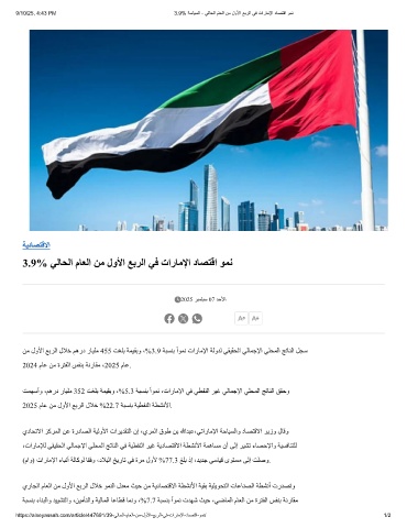 9/10/25, 4:43 PM 3.9% ﺔﺳﺎﯾﺳﻟا - ﻲﻟﺎﺣﻟا مﺎﻌﻟا نﻣ لوﻷا ﻊﺑرﻟا ﻲﻓ تارﺎﻣﻹا دﺎﺻﺗﻗا وﻣﻧ