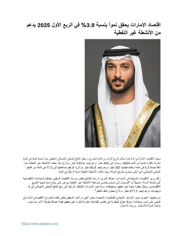 معدب 2025 لولأا عبرلا يف % 3.9 ةبسنب ًاومن ققحي تاراملإا داصتقا