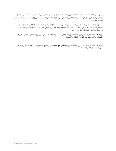 ةبسنب ةراجتلا عاطقو ،ةئملا يف 6.6 ةبسنب ًاومن تاراقعلا عاطق ققح نيح يف ،ةئملا يف 7.0 غلب ًاومن اهنم لك لجس يتلا ءانبلاو دييشتلاو