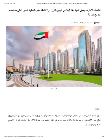 9/10/25, 4:47 PM ﺔﻟودﻟا ﺦﯾرﺎﺗﺑ ﺔﻣھﺎﺳﻣ ﻰﻠﻋأ لﺟﺳﺗ ﺔﯾطﻔﻧﻟا رﯾﻏ ﺔطﺷﻧﻷاو ..لوﻷا ﻊﺑرﻟا ﻲﻓ %3.9ـﺑ ًاوﻣﻧ ﻖﻘﺣﯾ تارﺎﻣﻹا دﺎﺻﺗﻗا