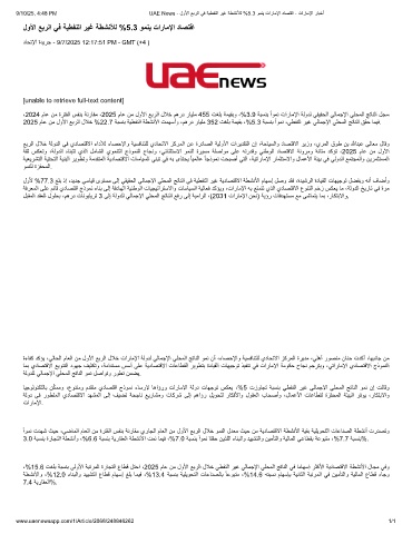 9/10/25, 4:48 PM UAE News - لوﻷا ﻊﺑرﻟا ﻲﻓ ﺔﯾطﻔﻧﻟا رﯾﻏ ﺔطﺷﻧﻸﻟ %5.3 وﻣﻧﯾ تارﺎﻣﻹا دﺎﺻﺗﻗا - تارﺎﻣﻹا رﺎﺑﺧأ