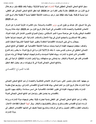9/10/25, 4:49 PM 3.9 % 2025 لوﻷا ﻊﺑرﻟﺎﺑ مھرد رﺎﯾﻠﻣ 455 ﻰﻟإ تارﺎﻣﻹا ﺞﺗﺎﻧ وﻣﻧ